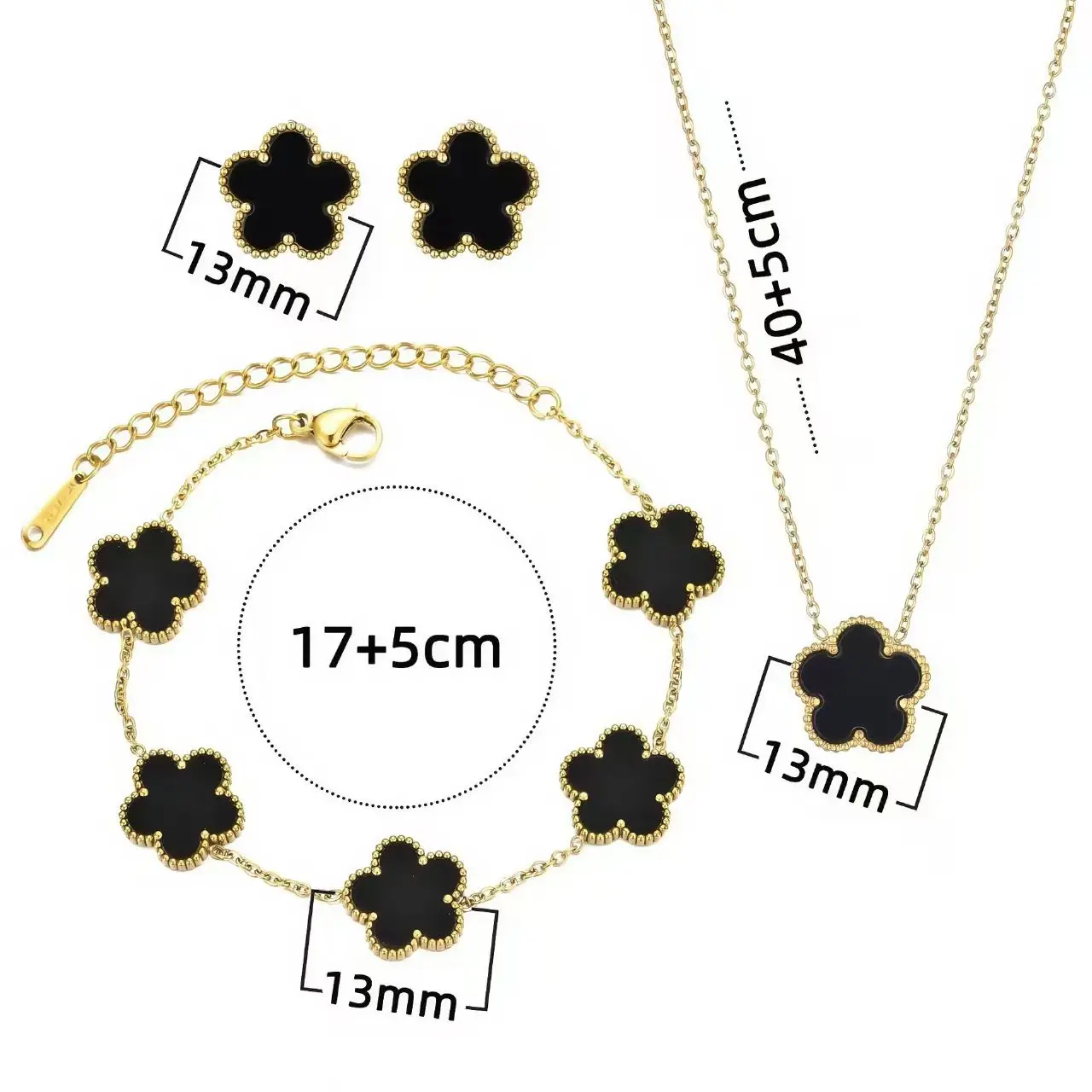 3-Piece Set of Plum Blossom Five-Leaf Flower Necklace Bracelet Women’s Gift Jewelry Set for Parties