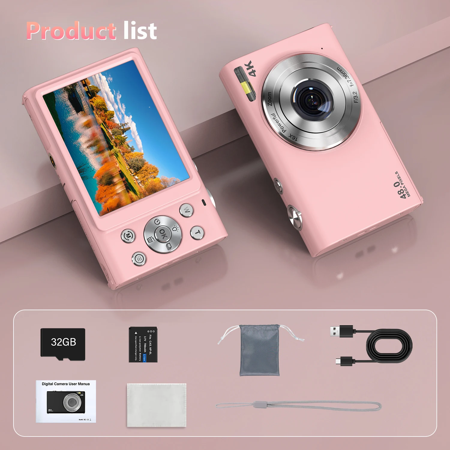 4K Digital Camera Autofocus Vlogging Camera HD 48MP with 2.8″ Large Screen Camcorder Camera for Photography for Kid Adult