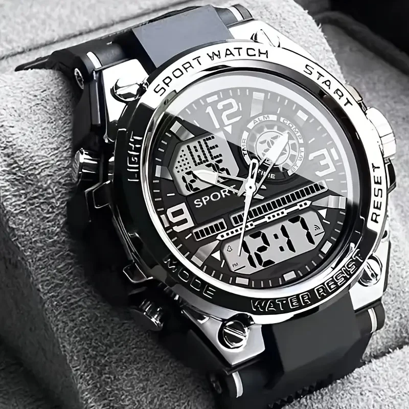 Men’s and Women’s Dual Display Racing Watch: Large Dial++Alarm Clock+Double Calendar+Stopwatch Function, Fearless of Dark Lighting Environments