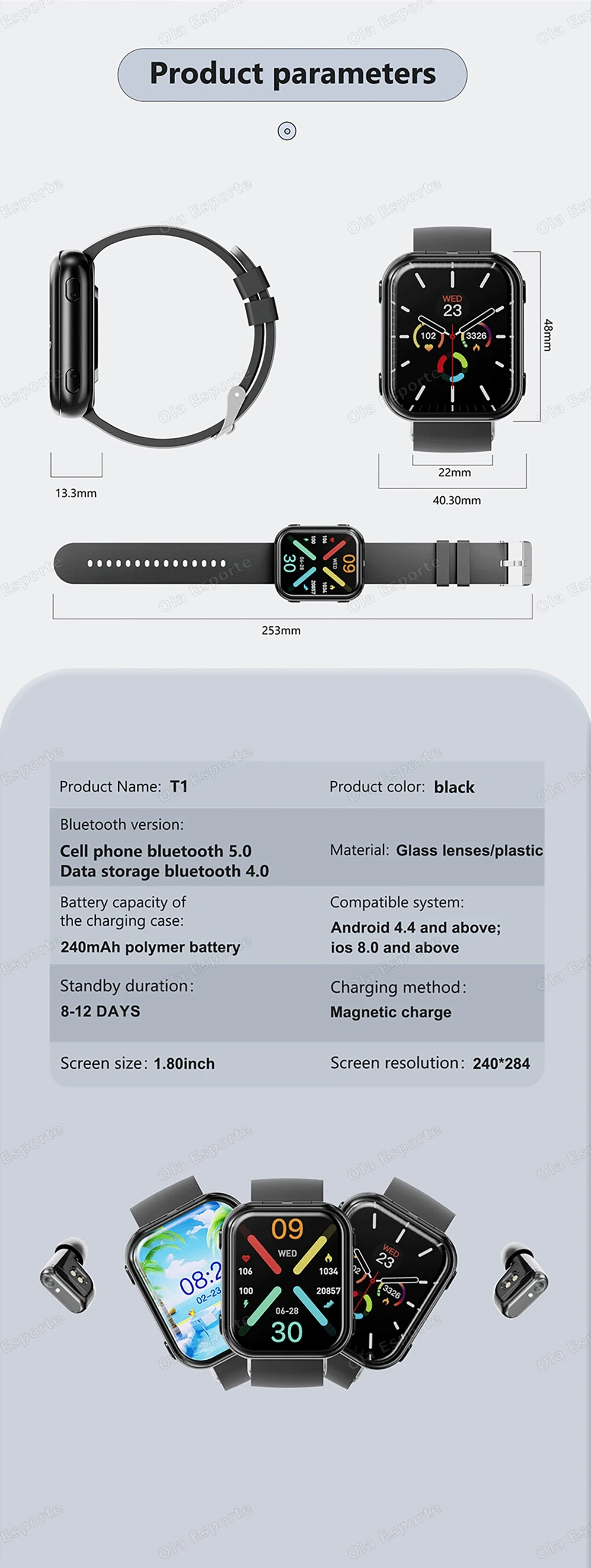 Screen size: 1.80 inches, resolution 240*284;