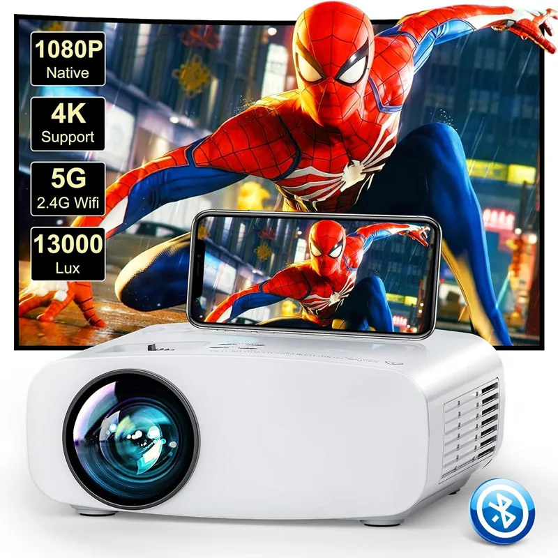 [ Bluetooth 5.1 Technology ] – Connect your Bluetooth projector to Bluetooth speakers for a richer, more powerful sound experience, or pair with headphones for private, immersive viewing without disturbing others. Perfect for both shared movie nights and personal entertainment, this smart projector is also a great Bluetooth projector for iPhone users